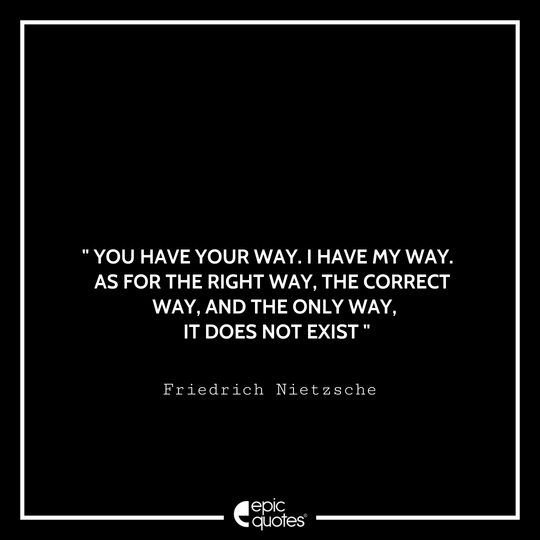 8. You have your way. I have my way. As for the right way, the correct way, and the only way, it does not exist. -Friedrich Nietzsche