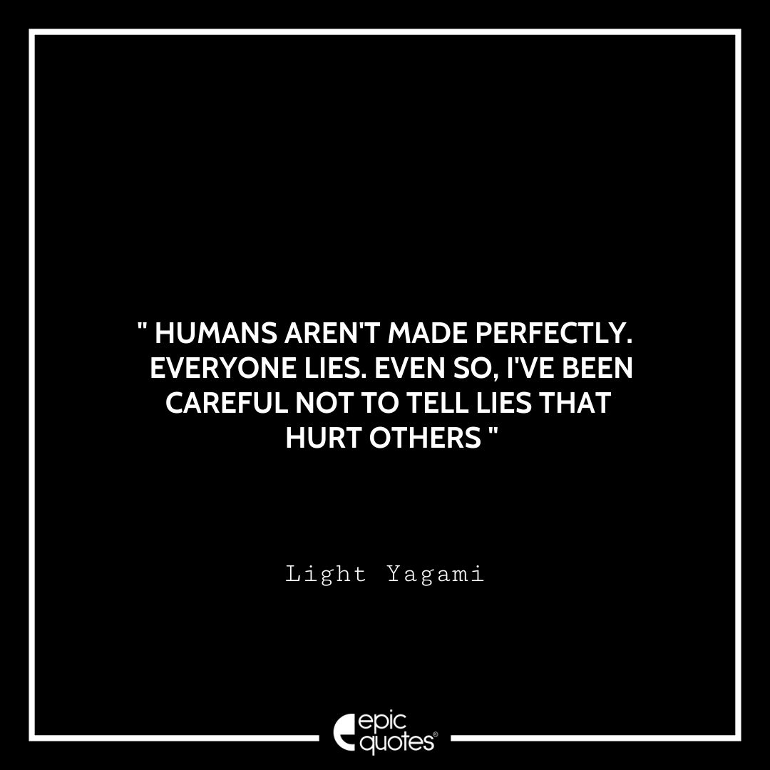 1 . Humans aren’t made perfectly. Everyone lies. Even so, I’ve been careful not to tell lies that hurt others. -Light Yagami