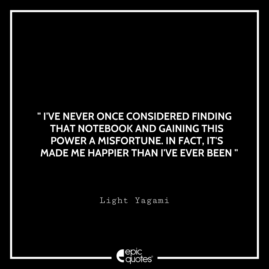 4. I’ve Never Once Considered Finding That Notebook And Gaining This Power A Misfortune. In Fact, It’s Made Me Happier Than I’ve Ever Been. -Light Yagami