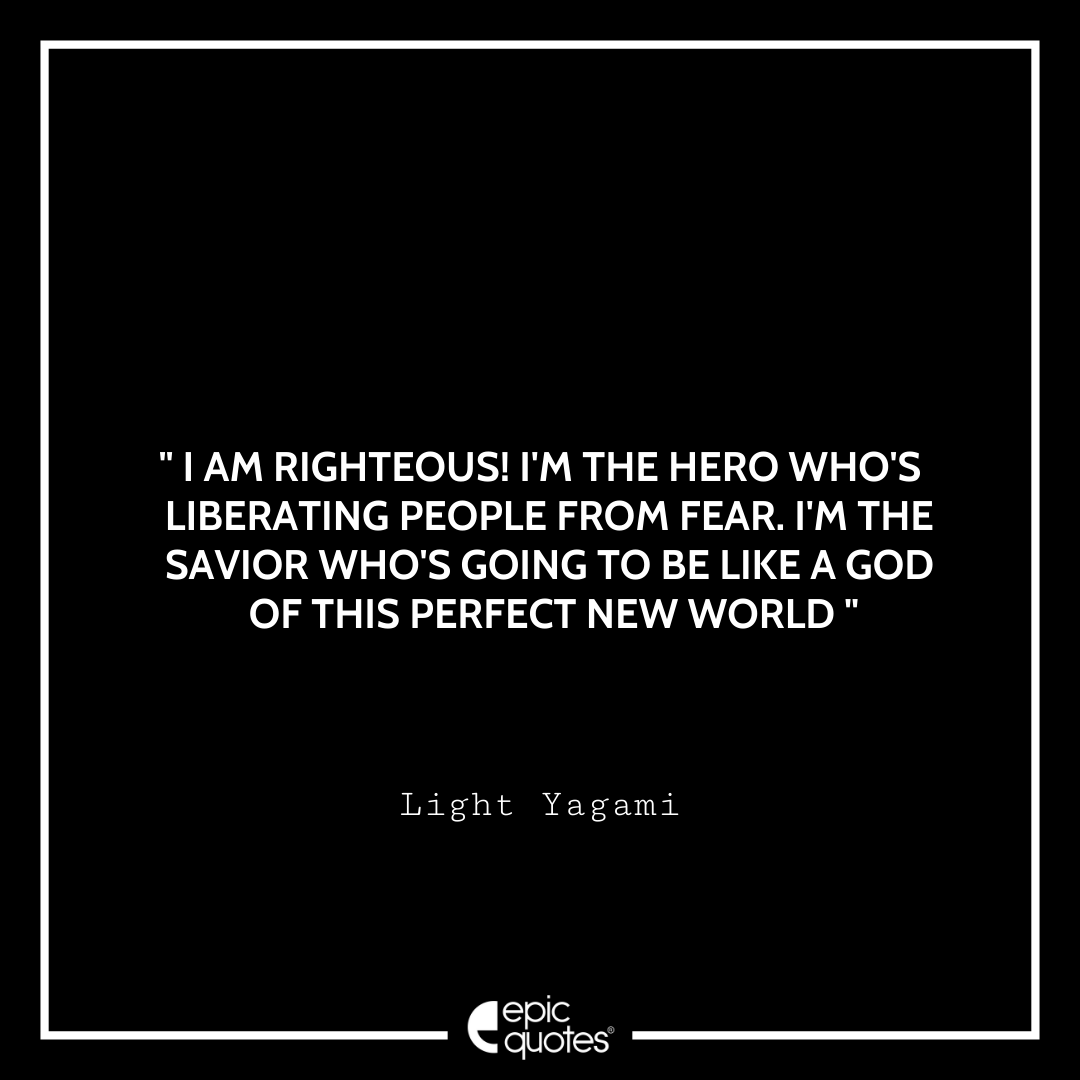 5 . I am righteous! I’m the hero who’s liberating people from fear. I’m the savior who’s going to be like a god of this perfect new world. -Light Yagami