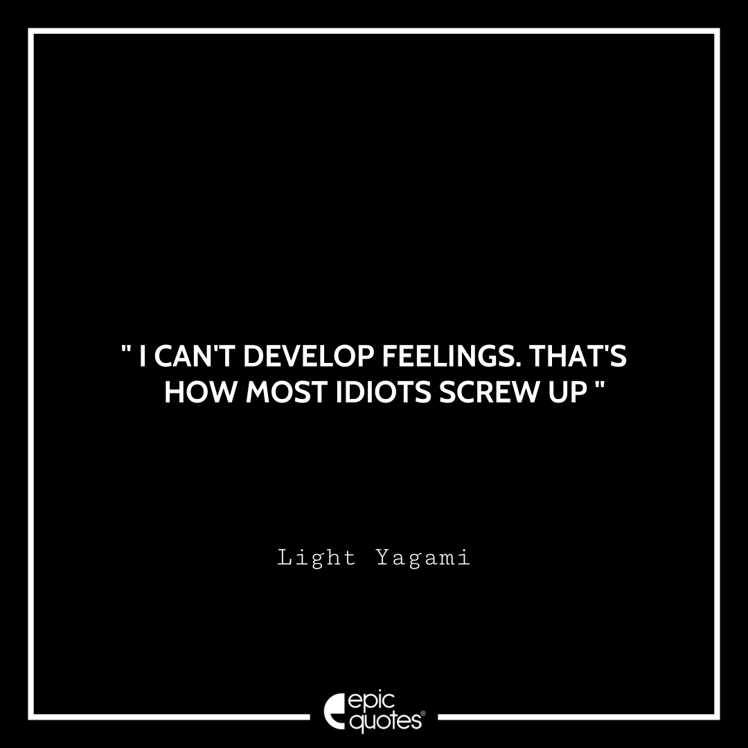 8 . I Can’t Develop Feelings. That’s How Most Idiots Screw Up. -Light Yagami