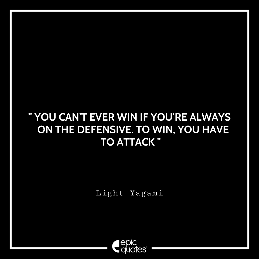 10 . You can’t ever win if you’re always on the defensive. To win, you have to attack. -Light Yagami