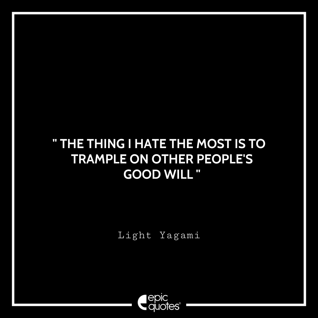 11 . The thing I hate the most is to trample on other people’s good will. -Light Yagami
