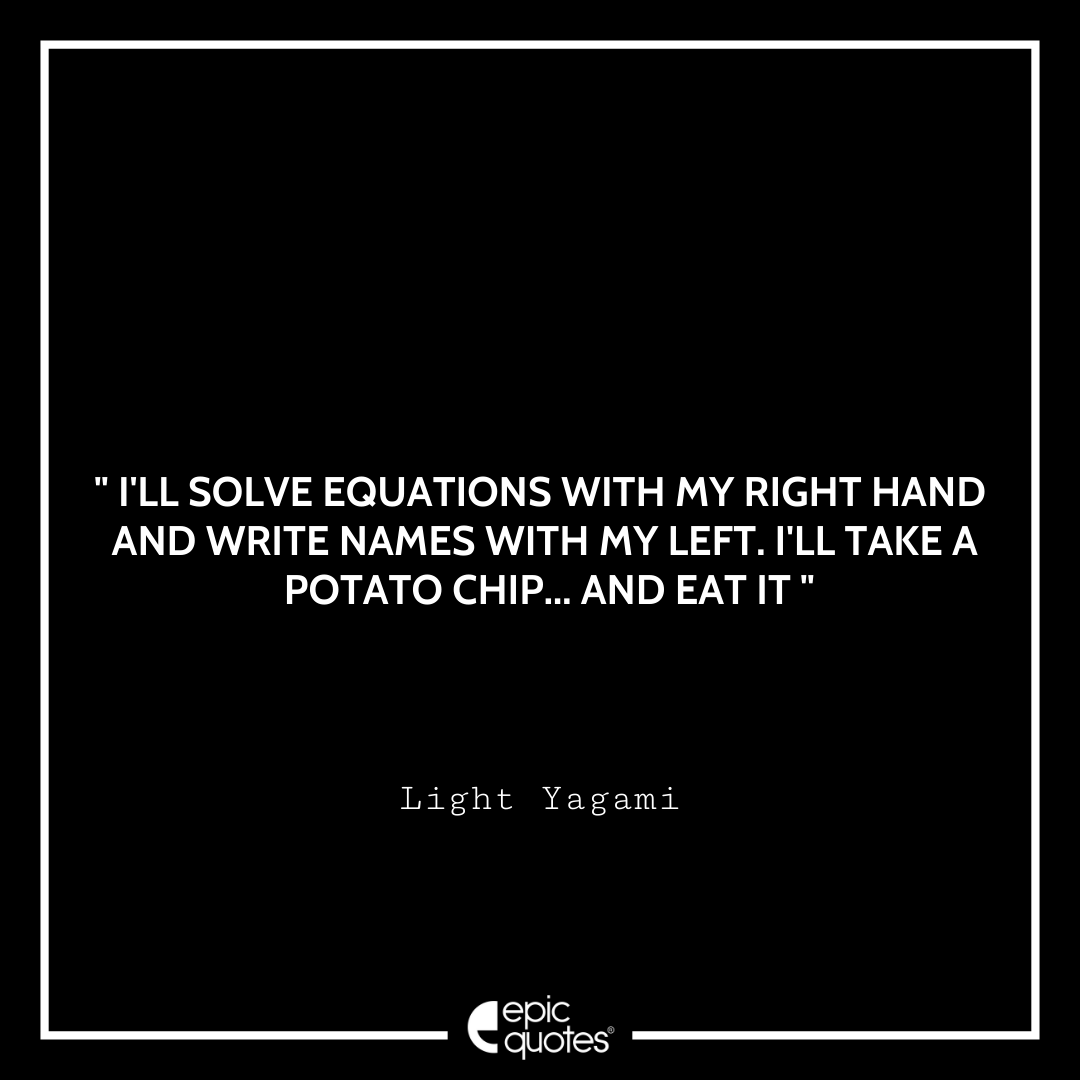 12 . I’ll solve equations with my right hand and write names with my left. I’ll take a potato chip… and eat it. -Light Yagami