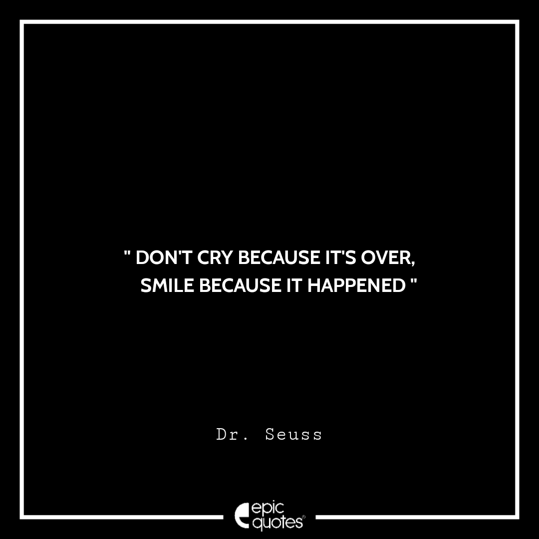 1. Don’t cry because it’s over. Smile because it happened. –Dr. Seuss