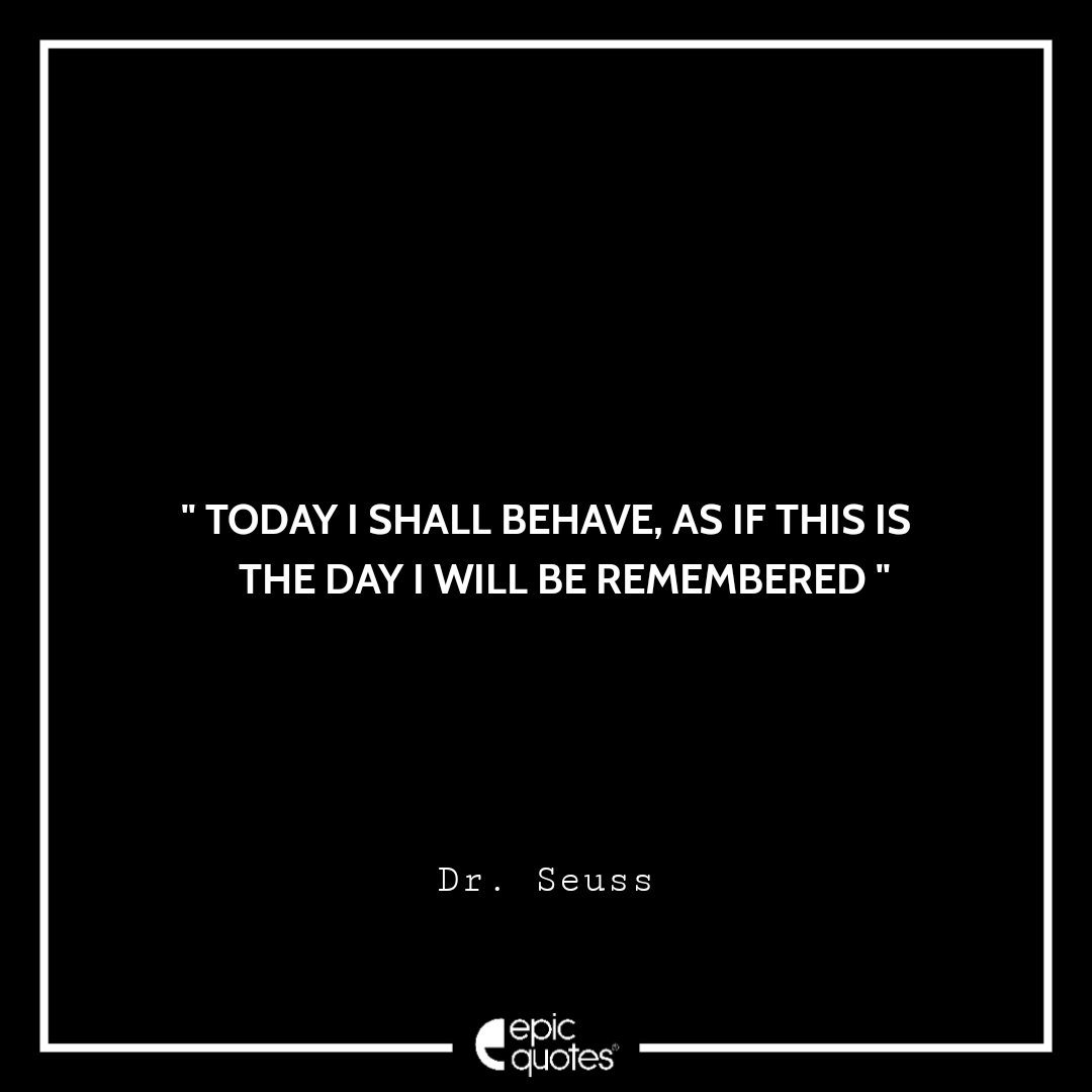 7 Today I shall behave, as if this is the day I will be remembered. –Dr. Seuss