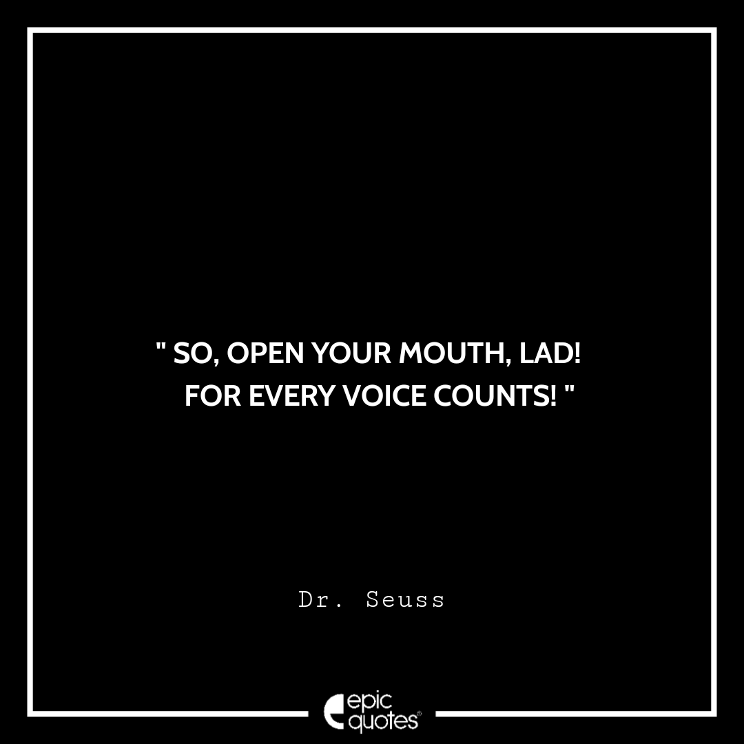 14. So, open your mouth, lad! For every voice counts! –Dr. Seuss