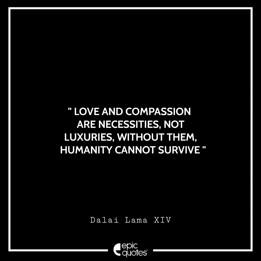 1. Love and compassion are necessities, not luxuries, Without them, humanity cannot survive. -Dalai Lama XIV
