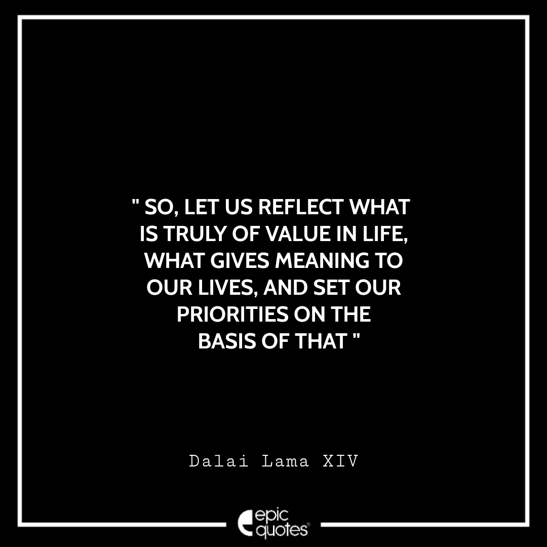 4 So, let us reflect what is truly of value in life, what gives meaning to our lives, and set our priorities on the basis of that. -Dalai Lama XIV