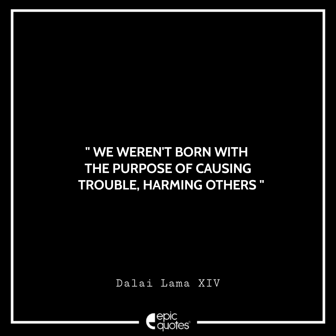 8 We weren’t born with the purpose of causing trouble, harming others. -Dalai Lama XIV