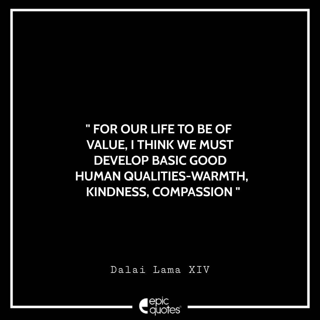 10 For our life to be of value, I think we must develop basic good human qualities-warmth, kindness, compassion. -Dalai Lama XIV