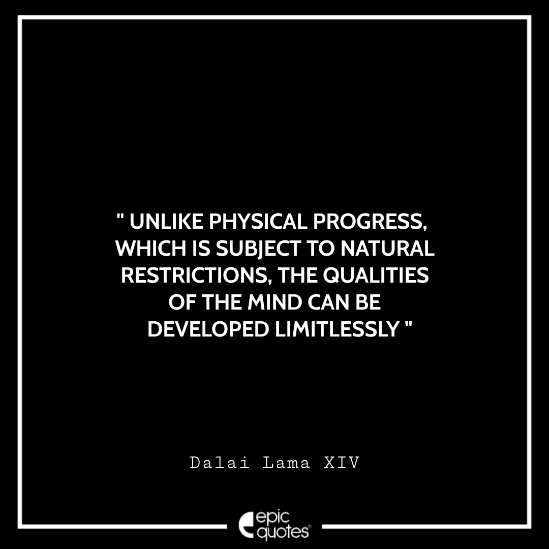 11. Unlike physical progress, which is subject to natural restrictions, the qualities of the mind can be developed limitlessly. -Dalai Lama XIV