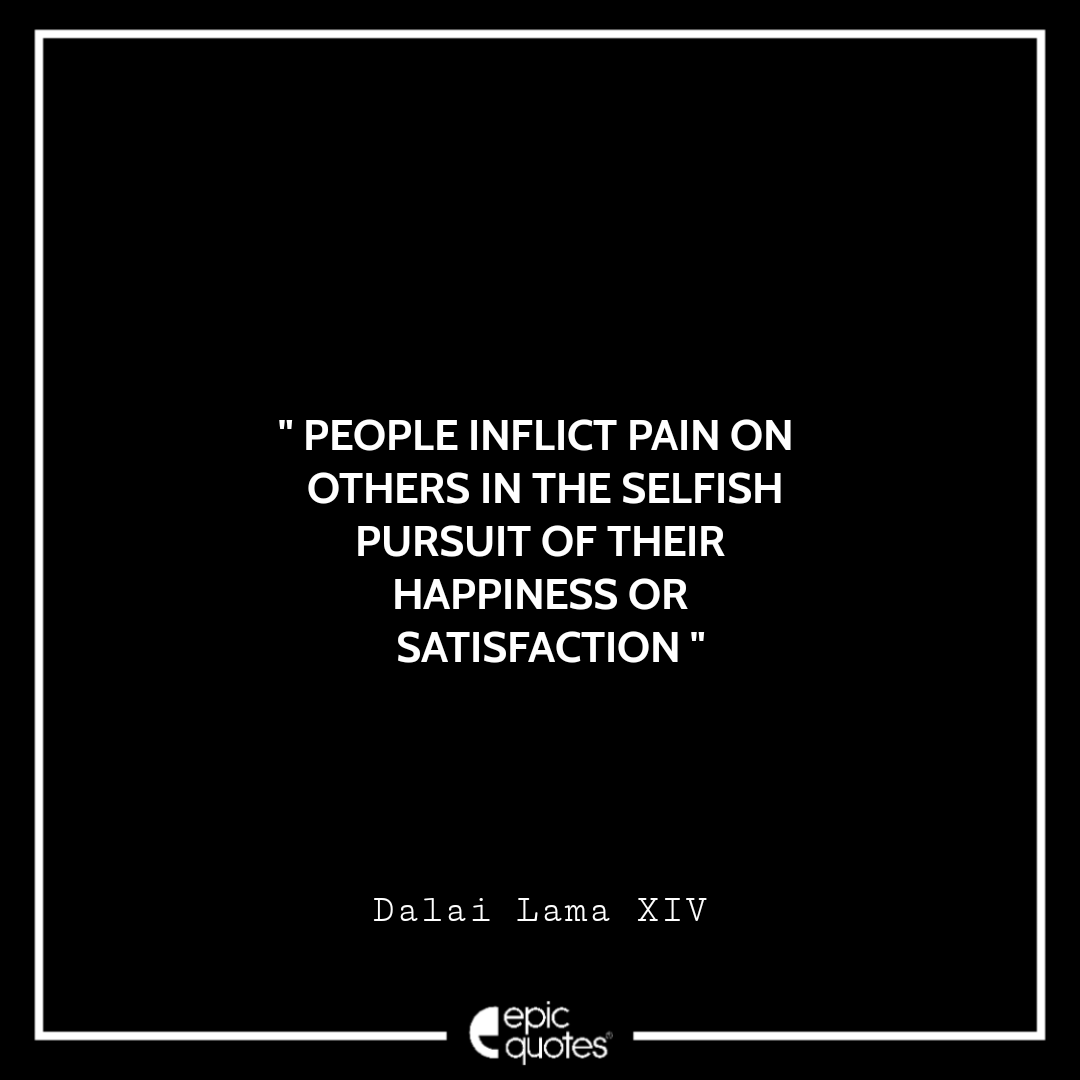 12 People inflict pain on others in the selfish pursuit of their happiness or satisfaction. -Dalai Lama XIV