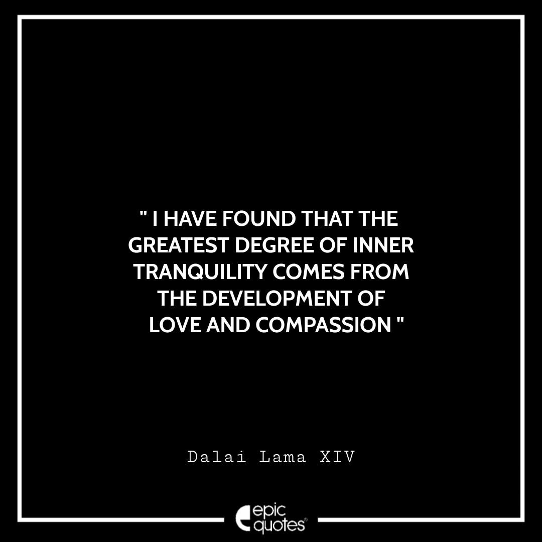13. I have found that the greatest degree of inner tranquility comes from the development of love and compassion. -Dalai Lama XIV
