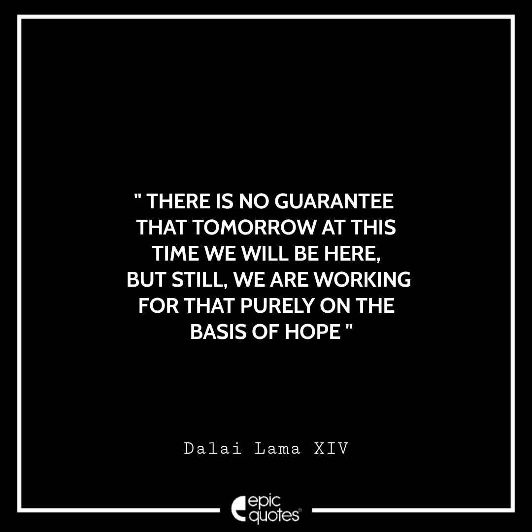 14 There is no guarantee that tomorrow at this time we will be here, But still, we are working for that purely on the basis of hope. -Dalai Lama XIV