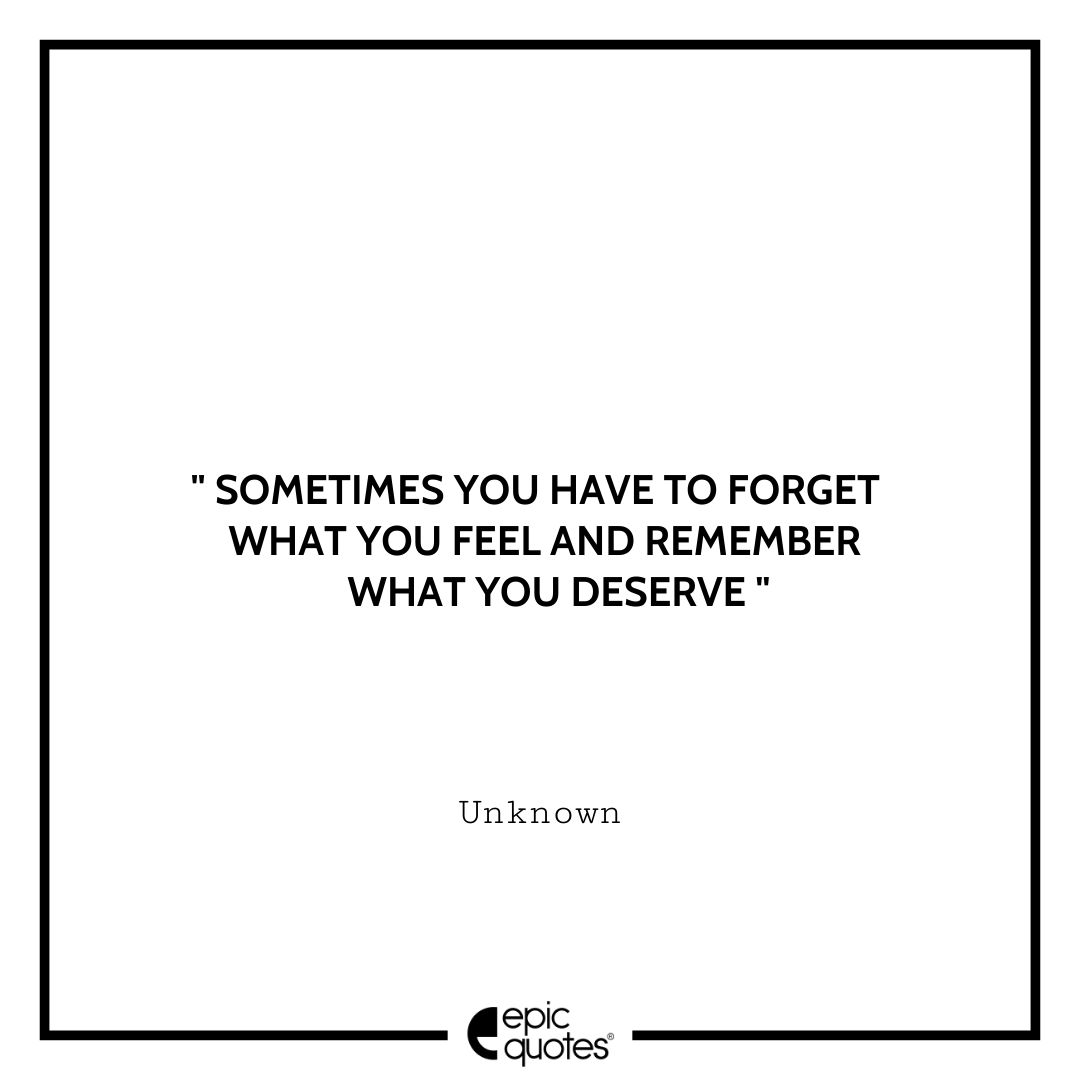 7 Sometimes you have to forget what you feel and remember what you deserve. -Unknown
