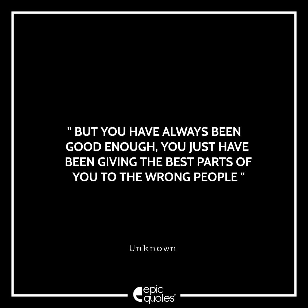2 . But you have always been good enough, you just have been giving the best parts of you to the wrong people. -Unknown