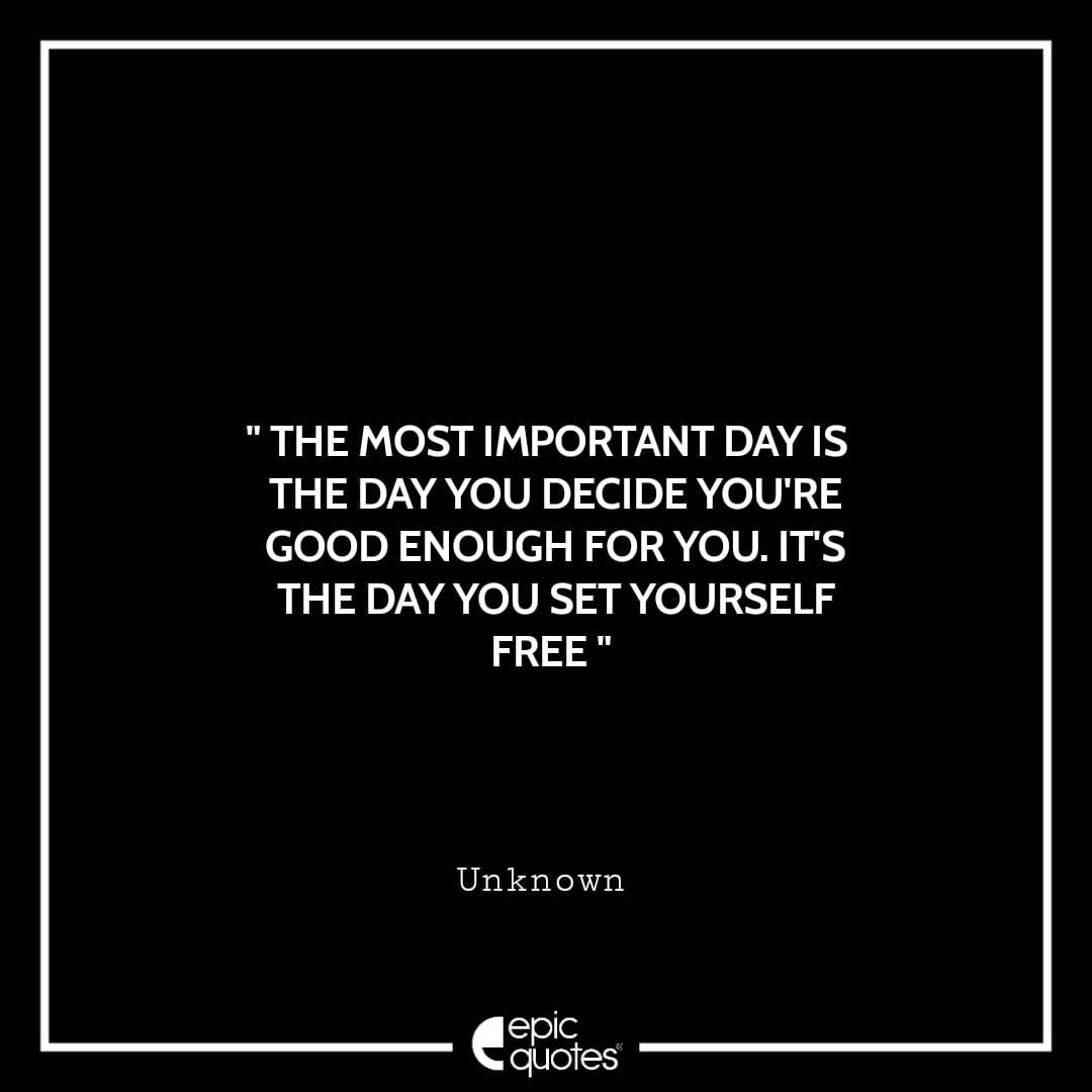 7 . The most important day is the day you decide you’re good enough for you. It’s the day you set yourself free. -Unknown