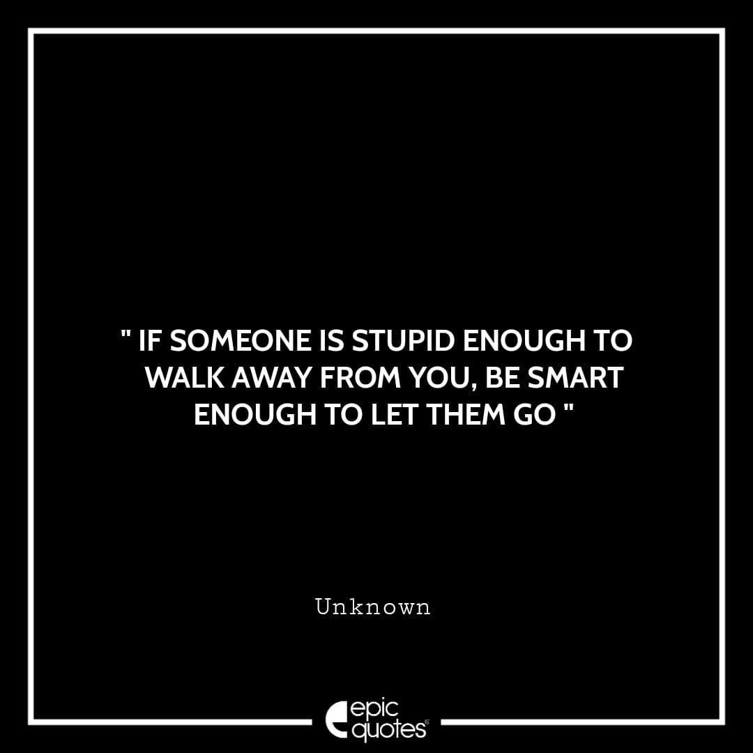 13 . If someone is stupid enough to walk away from you, be smart enough to let them go. -Unknown