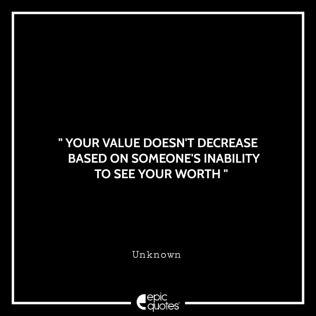 15 . Your value doesn’t decrease based on someone’s inability to see your worth. -Unknown