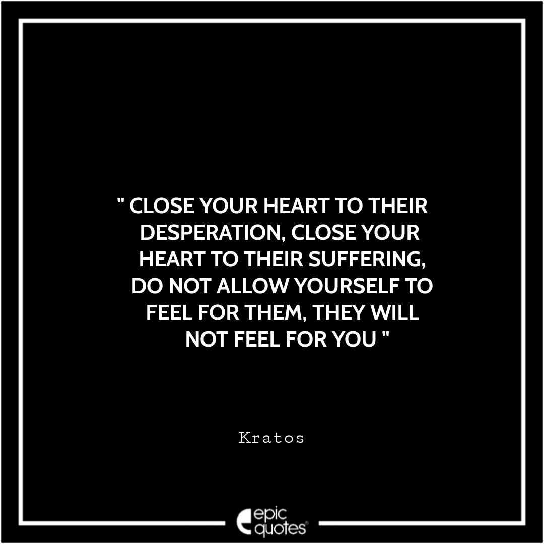 10. Close your heart to their desperation, Close your heart to their suffering, Do not allow yourself to feel for them, They will not feel for you. -Kratos
