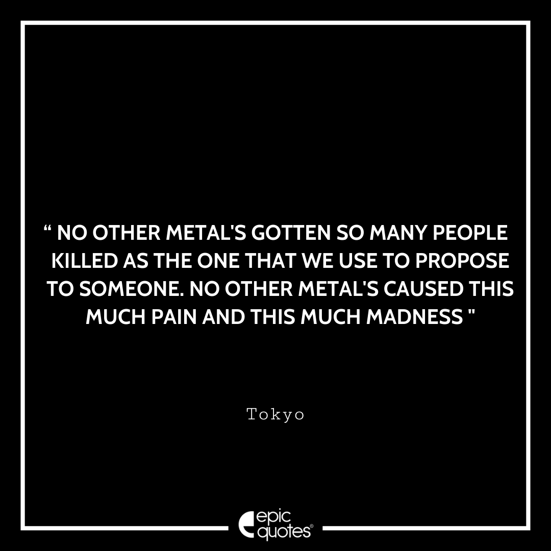 1. No other metal’s gotten so many people killed as the one that we use to propose to someone. No other metal’s caused this much pain and this much madness-Tokyo
