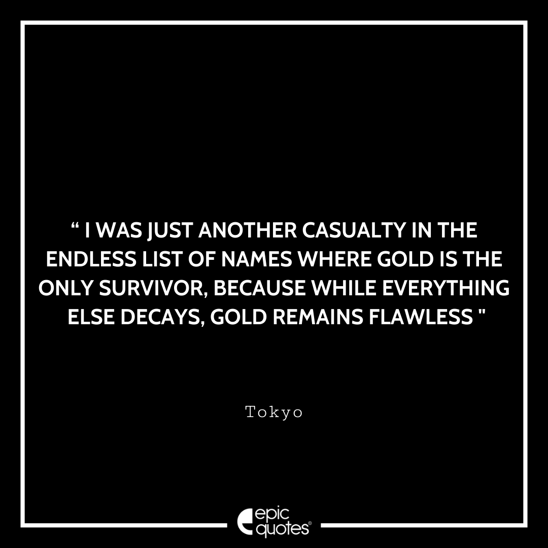 2. I was just another casualty in the endless list of names where gold is the only survivor, because while everything else decays, gold remains flawless. -Tokyo