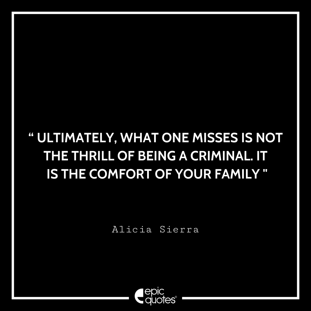 9. Ultimately, what one misses is not the thrill of being a criminal. It is the comfort of your family. -Alicia Sierra