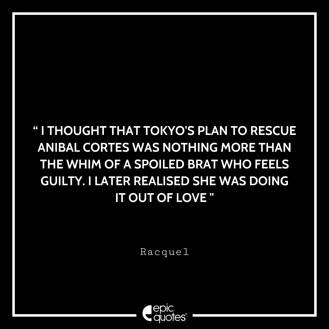 10 I thought that Tokyo’s plan to rescue Anibal Cortes was nothing more than the whim of a spoiled brat who feels guilty. I later realised she was doing it out of love. -Racquel