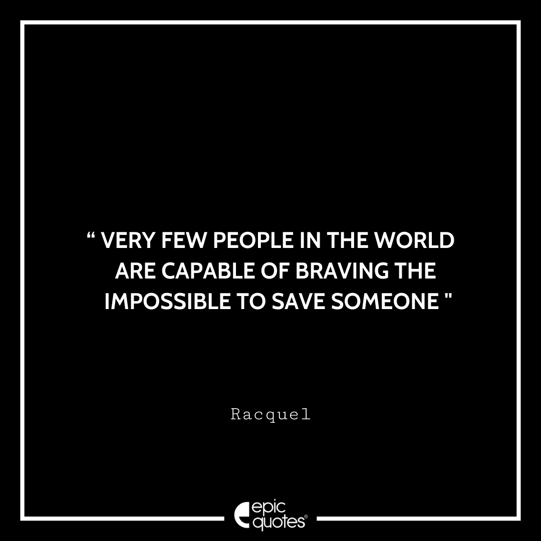 11 Very few people in the world are capable of braving the impossible to save someone. -Racquel