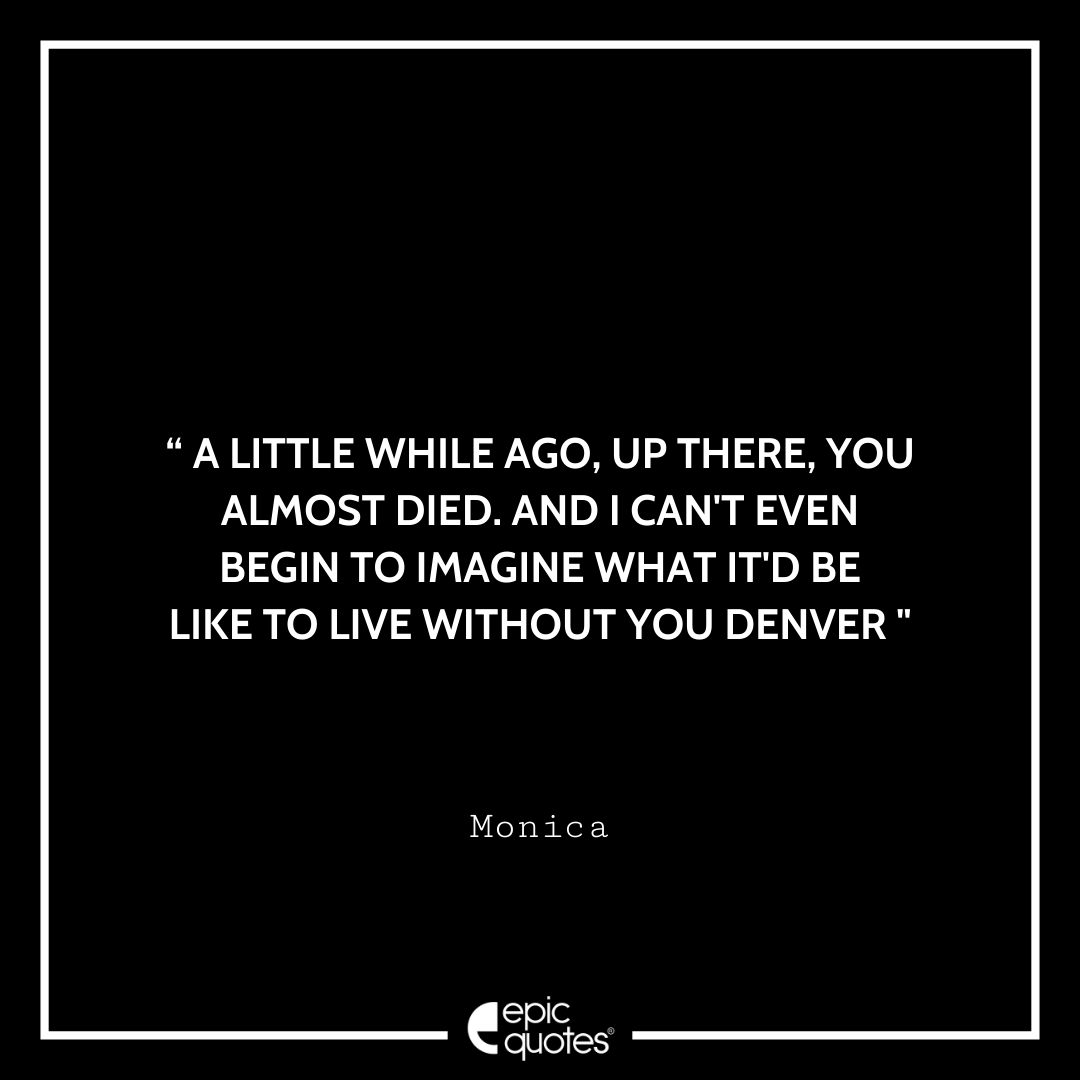 12. A little while ago, up there, you almost died. And I can’t even begin to imagine what it’d be like to live without you Denver. -Monica