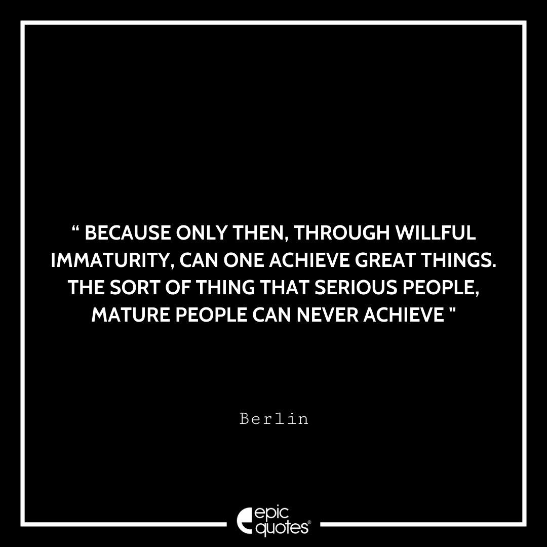 13 Because only then, through willful immaturity, can one achieve great things. The sort of thing that serious people, mature people can never achieve. -Berlin