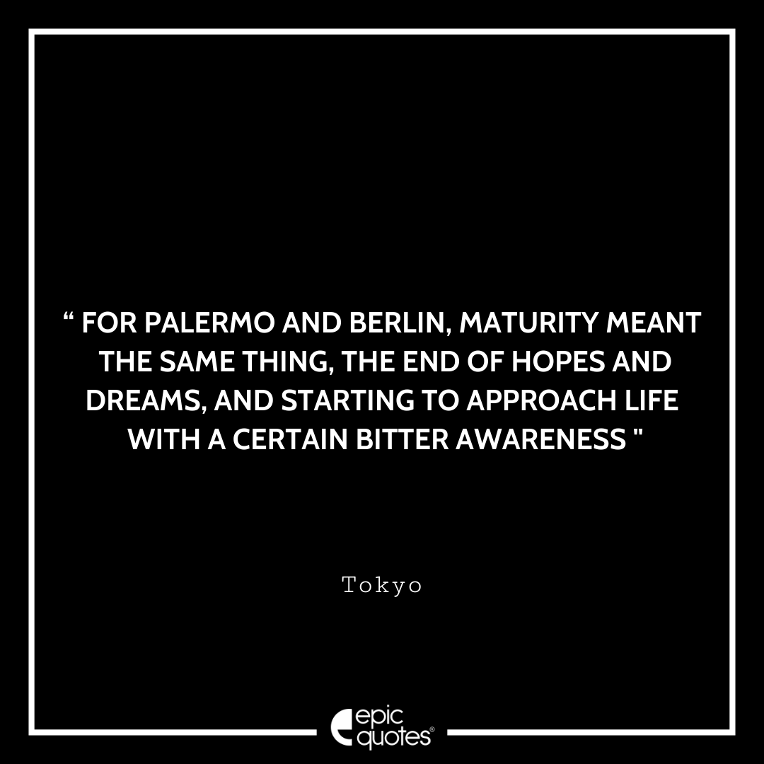 14 For Palermo and Berlin, maturity meant the same thing, The end of hopes and dreams, and starting to approach life with a certain bitter awareness. -Tokyo