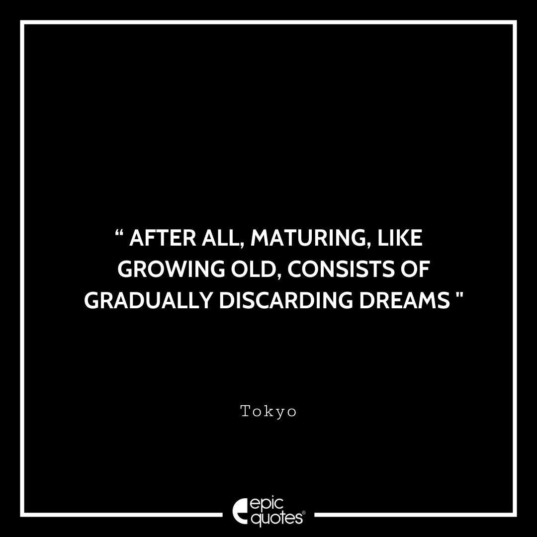 14. For Palermo and Berlin, maturity meant the same thing, The end of hopes and dreams, and starting to approach life with a certain bitter awareness. -Tokyo