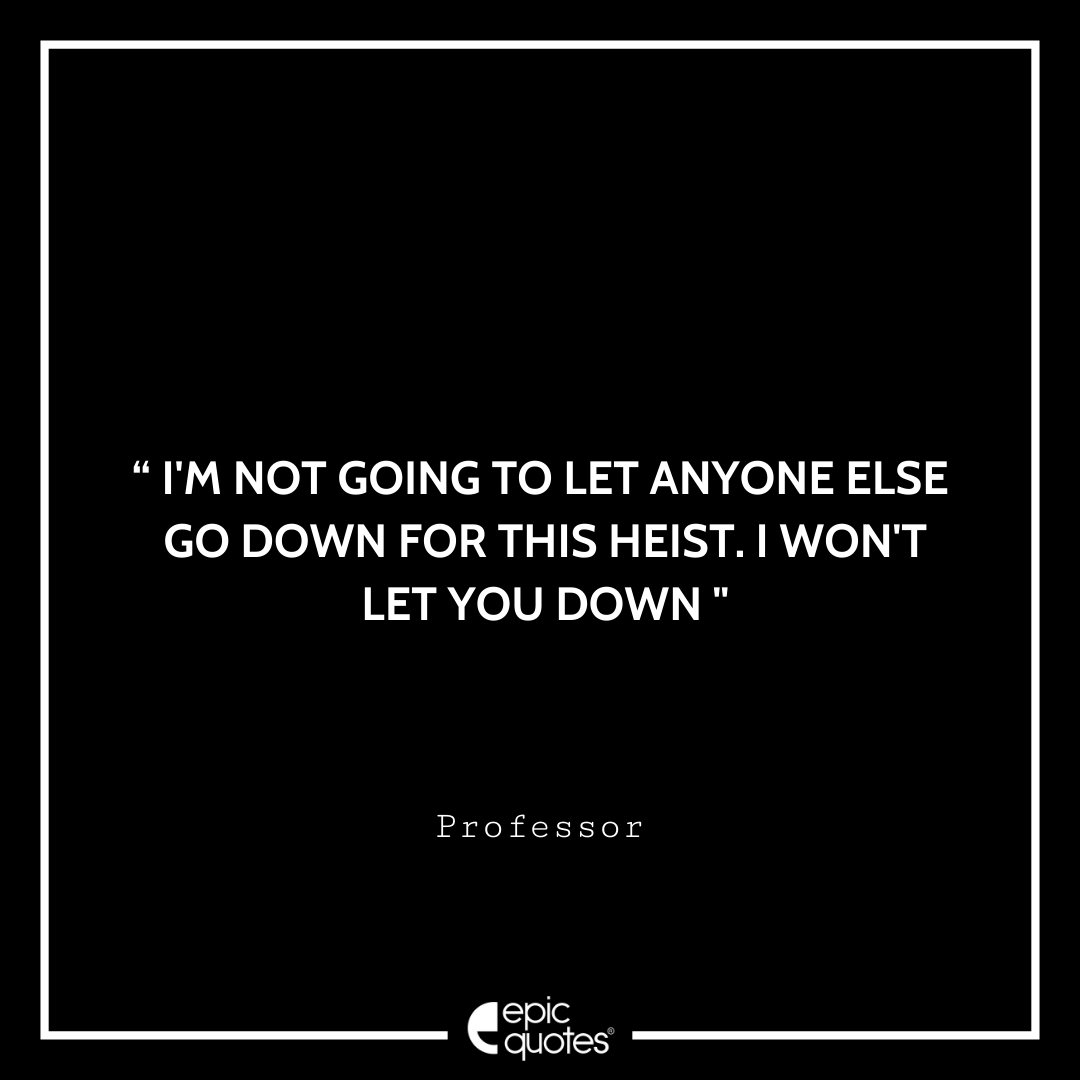 20 I’m not going to let anyone else go down for this heist. I won’t let you down.-Professor