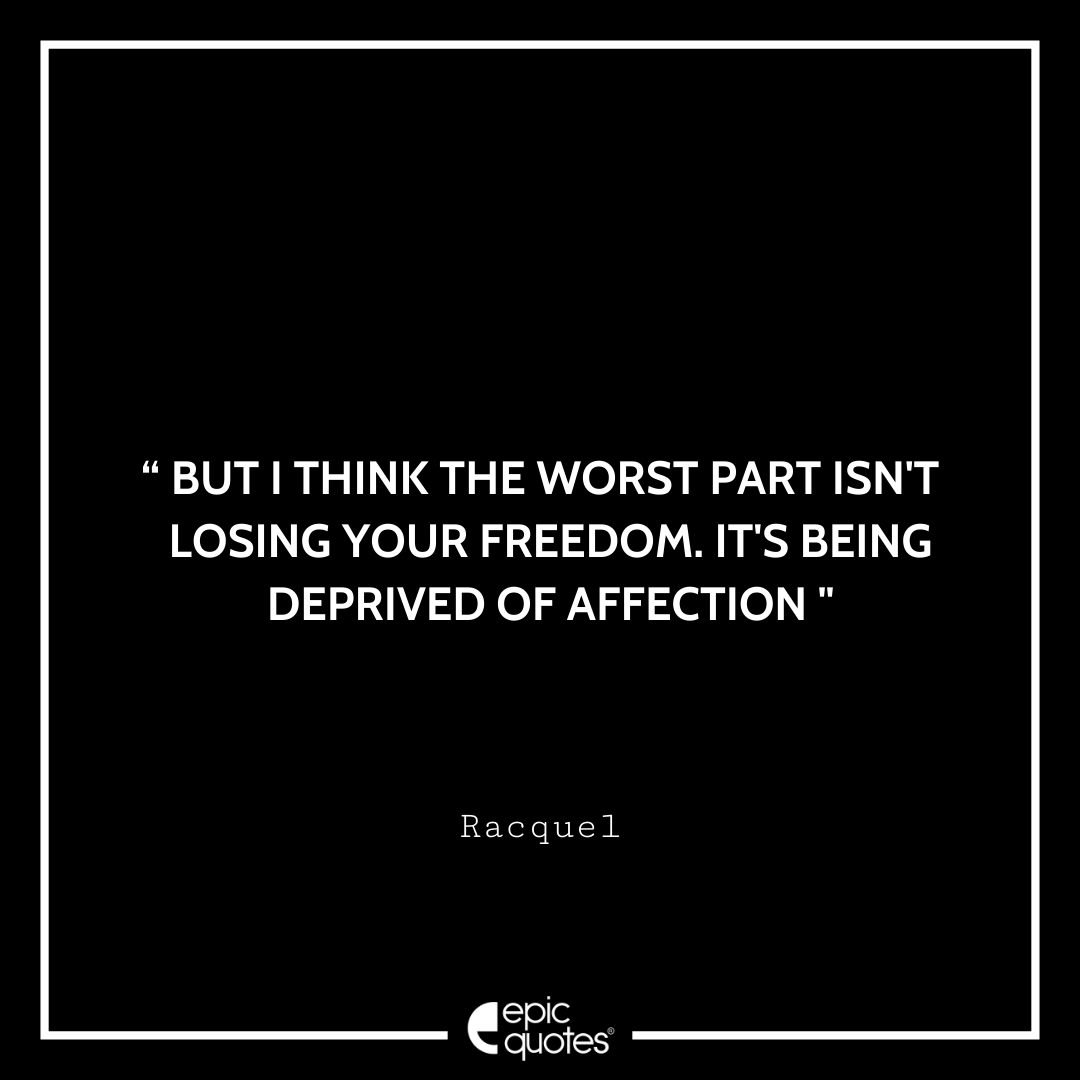 21. But I think the worst part isn’t losing your freedom. It’s being deprived of affection. -Racquel