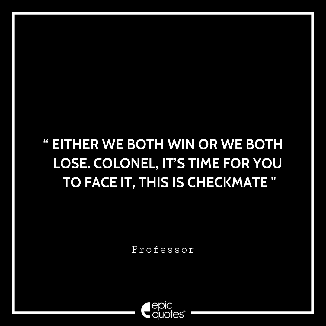 24 Either we both win or we both lose. Colonel, it’s time for you to face it, this is checkmate. -Professor