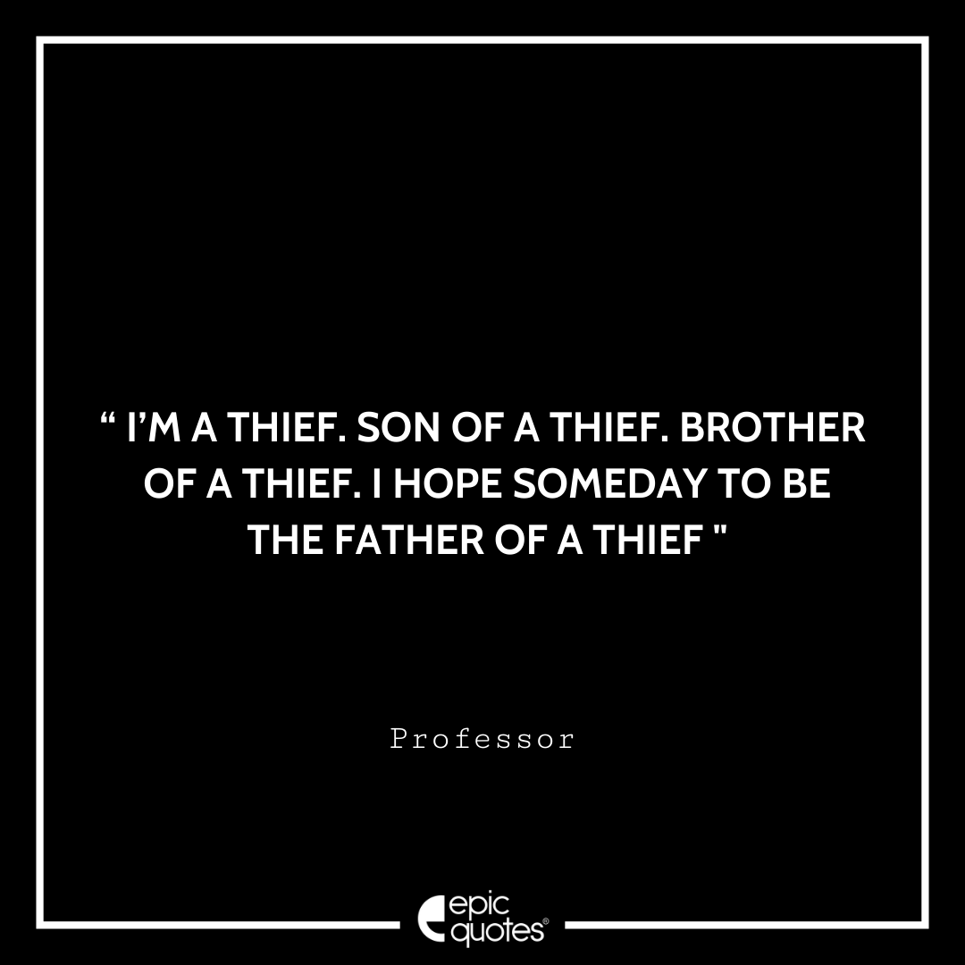 25. I’m a thief. son of a thief. Brother of a thief. I hope someday to be the father of a thief. -Professor