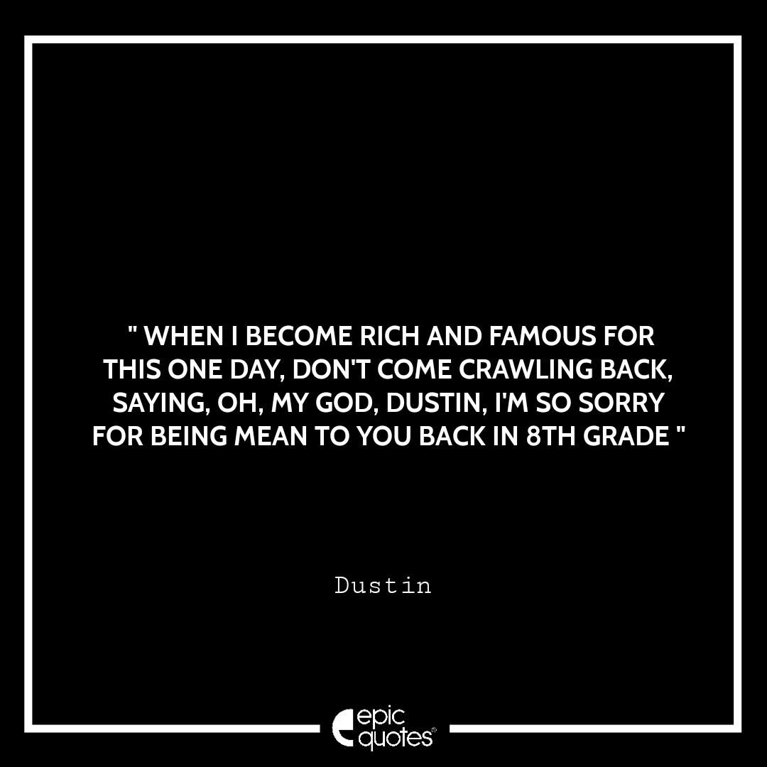6 When I become rich and famous for this one day, don’t come crawling back, saying, oh, my God, Dustin, I’m so sorry for being mean to you back in 8th grade