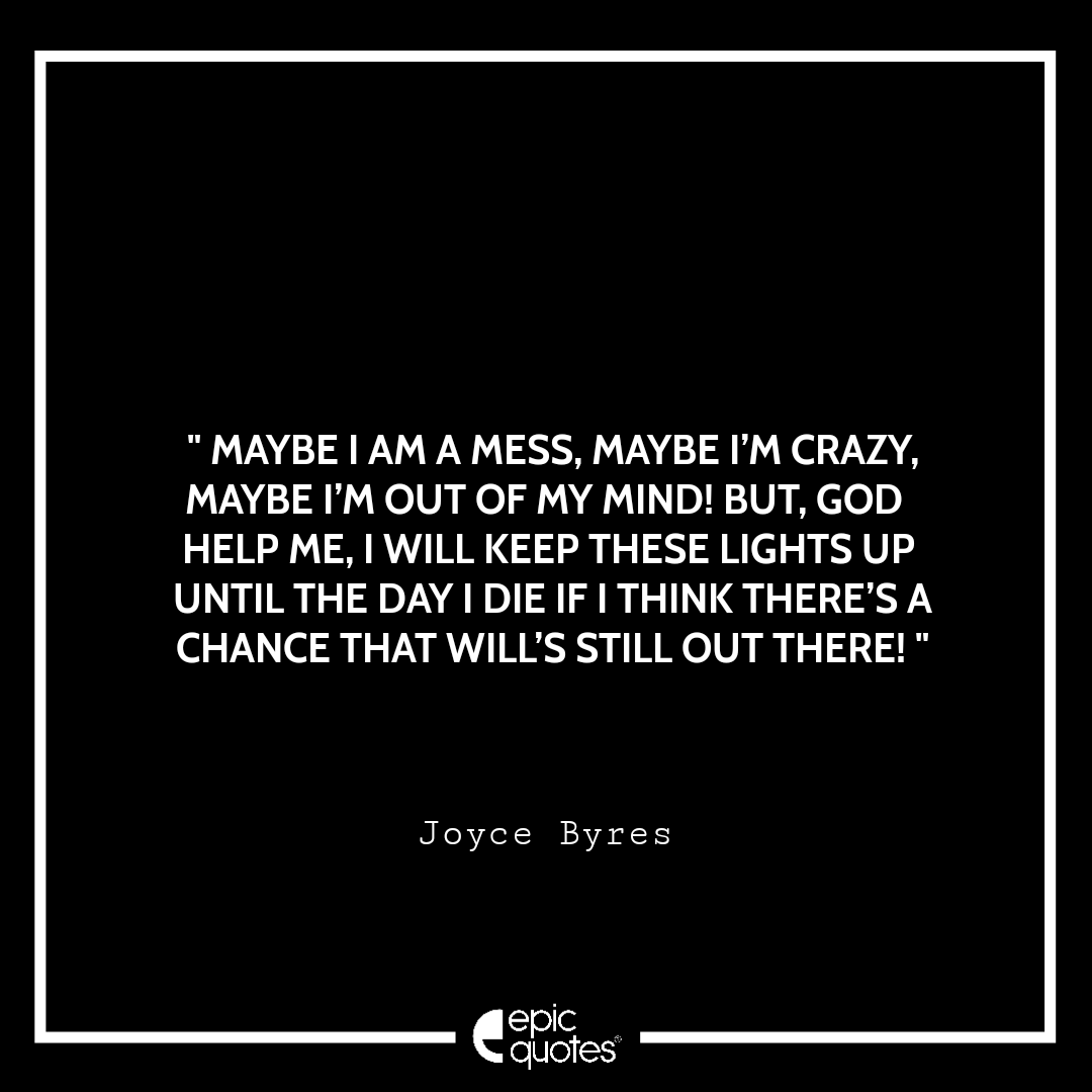 8. Maybe I am a mess. Maybe I’m crazy. Maybe I’m out of my mind! But, God help me, I will keep these lights up until the day I die if I think there’s a chance that Will’s still out there!
