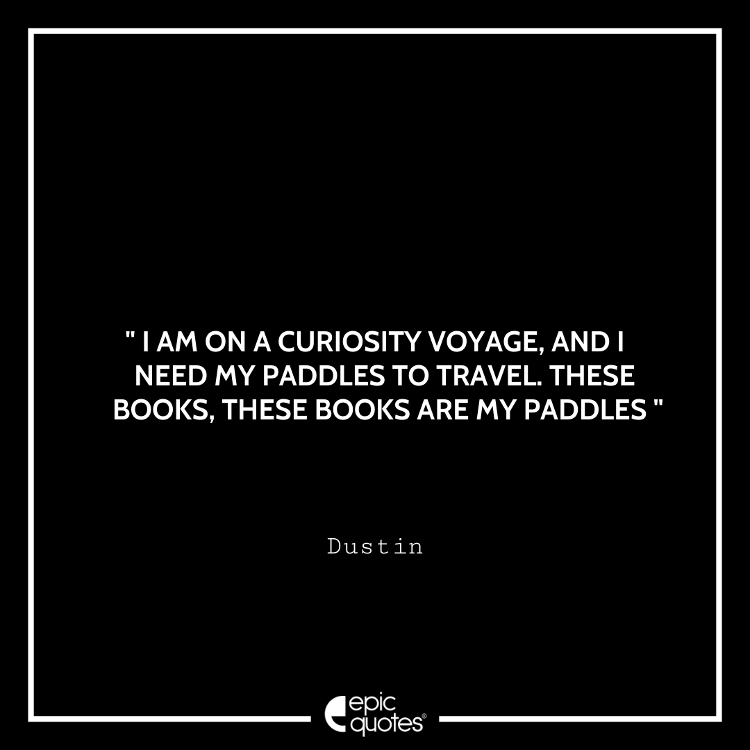 20. I am on a curiosity voyage, and I need my paddles to travel. These books, these books are my paddles. —Dustin