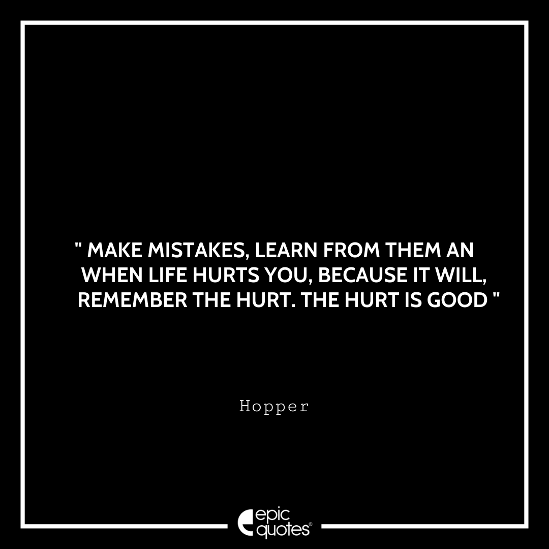 24. Make mistakes, learn from them and when life hurts you, because it will, remember the hurt. The hurt is good. -Hopper