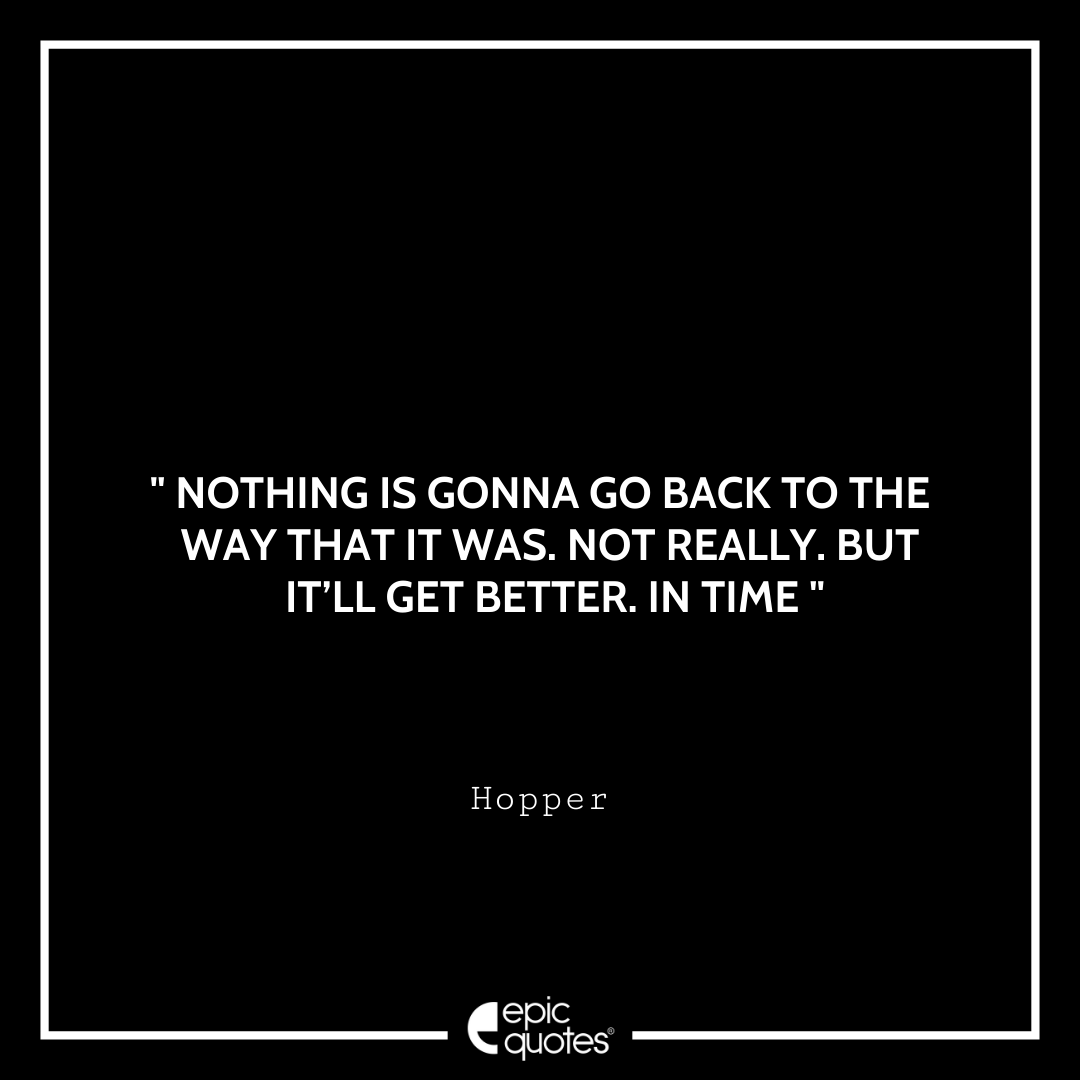 25. Nothing is gonna go back to the way that it was. Not really. But it’ll get better. In time. -Hopper