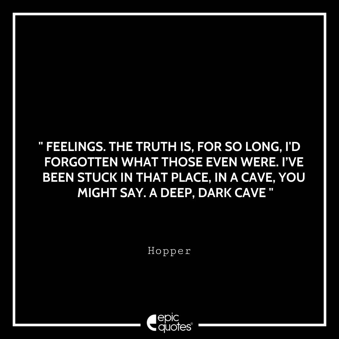 26. Feelings. The truth is, for so long, I’d forgotten what those even were. I’ve been stuck in that place, in a cave, you might say. A deep, dark cave. -Hopper