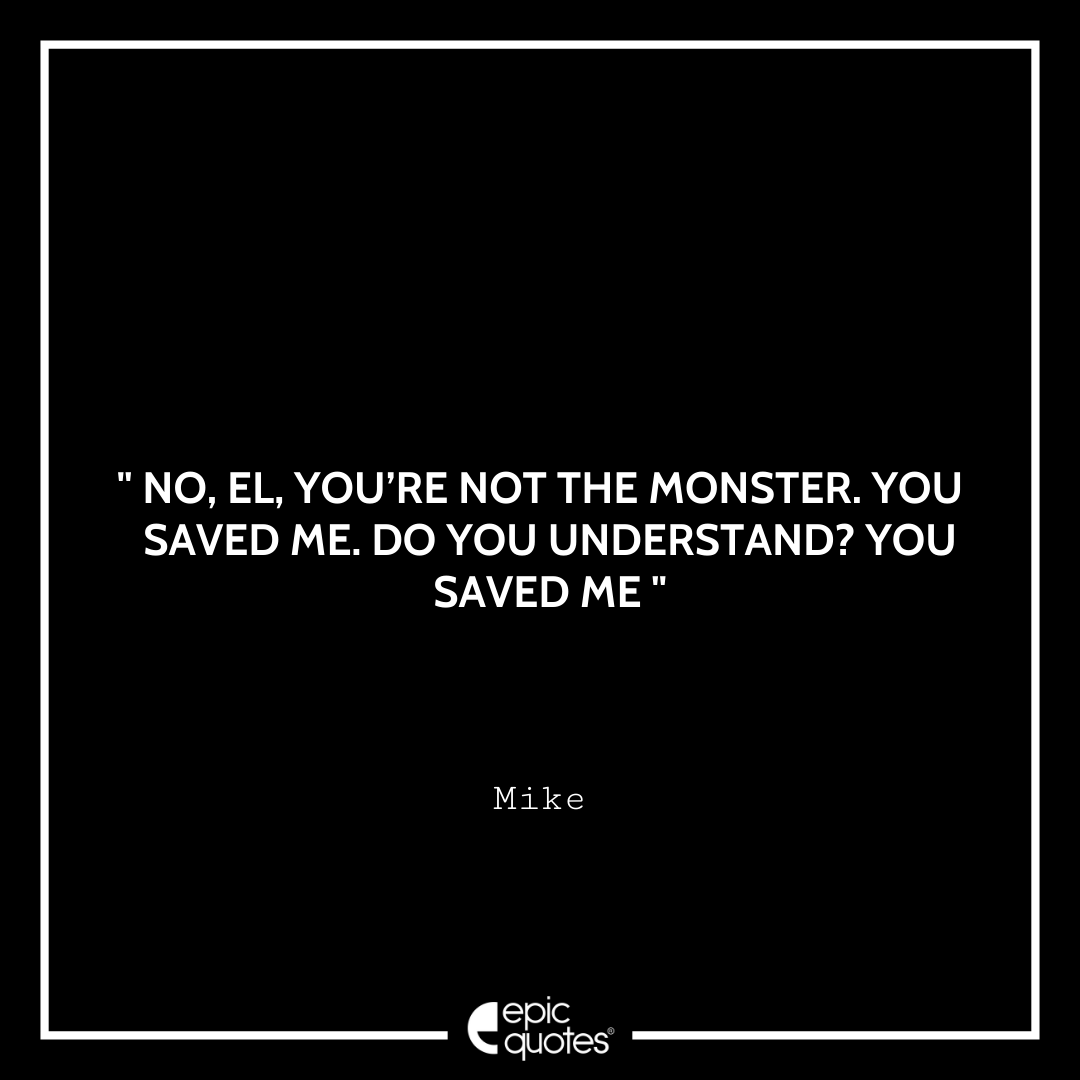 27. No, El, you’re not the monster. You saved me. Do you understand? You saved me. -Mike