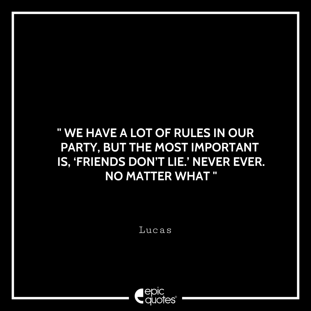 28 We have a lot of rules in our party, but the most important is, ‘Friends don’t lie.’ Never ever. No matter what. -Lucas
