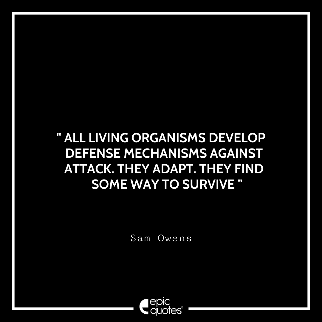 29. All living organisms develop defense mechanisms against attack. They adapt. They find some way to survive. -Sam Owens