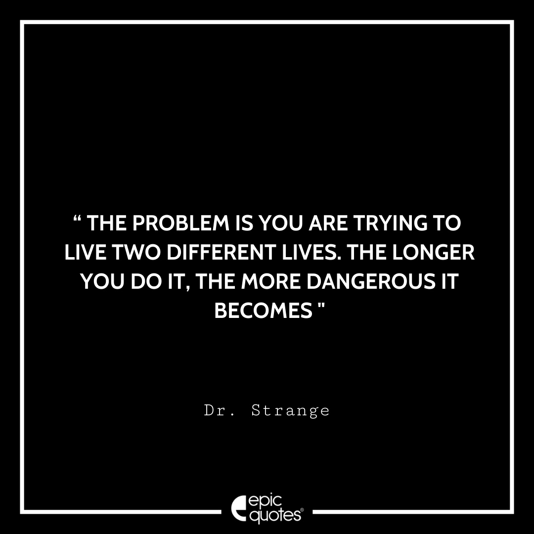 5 The problem is you are trying to live two different lives. The longer you do it, the more dangerous it becomes. -Dr Strange
