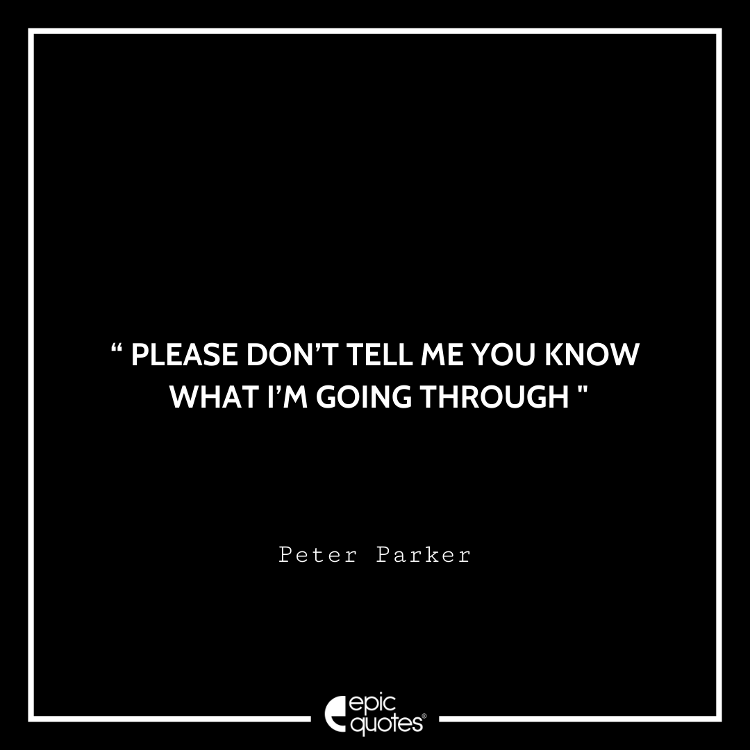 17. Please don’t tell me you know what I’m going through. –Peter Parker