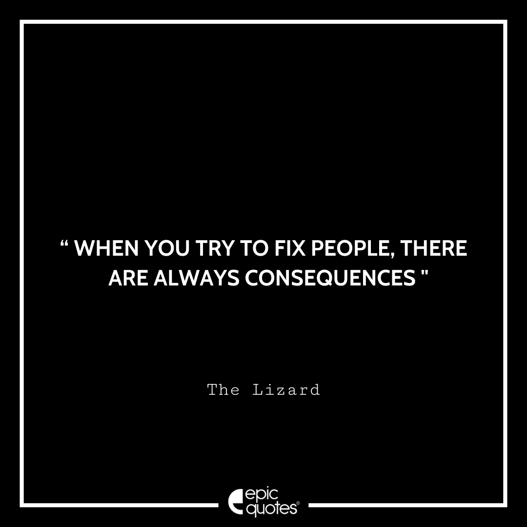 When Peter decides to cure the villains and save their lives, almost everyone agrees except The Lizard. He says this quote referring to his own experience with fixing his arm and turning into a mutated monster.